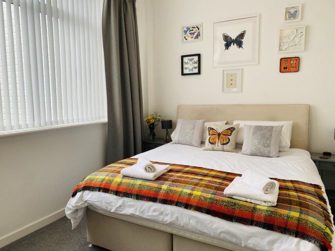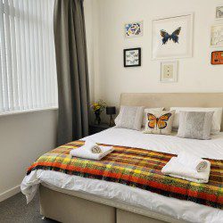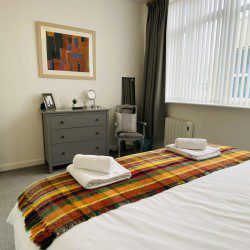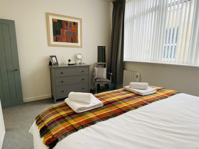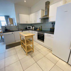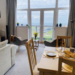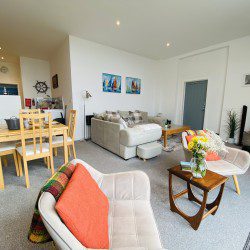 Portland View features a spacious open-plan kitchen, dining, and living room area. There are two bedrooms, one with its own bathroom, and both come with super king beds and comfy mattresses. Additionally, there’s a family bathroom equipped with a shower.