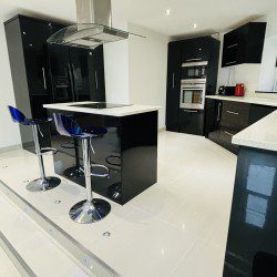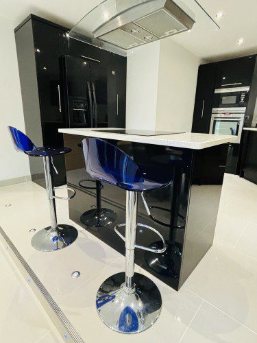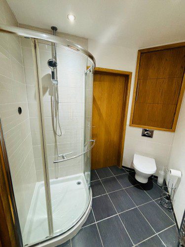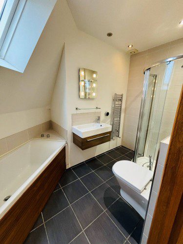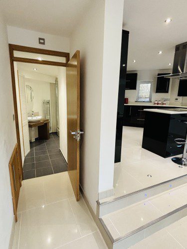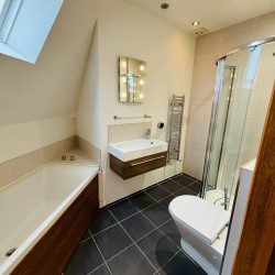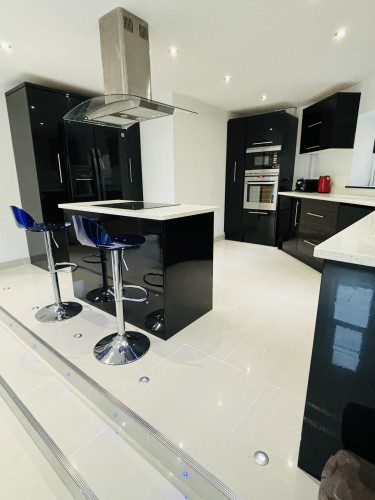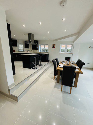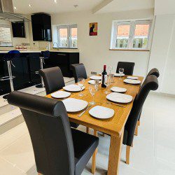 The home features three bedrooms, three bathrooms with three showers and a bath, and a large kitchen diner, providing everything you need for a comfortable and memorable stay at The Octagon, Weymouth, Dorset.