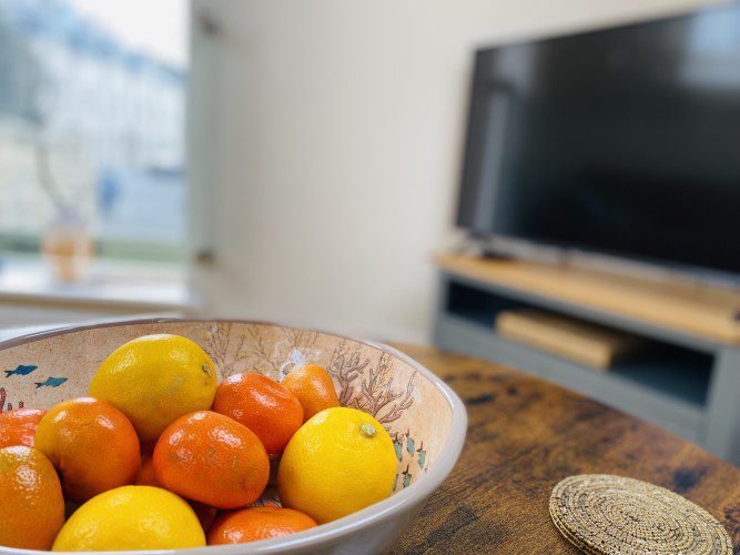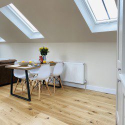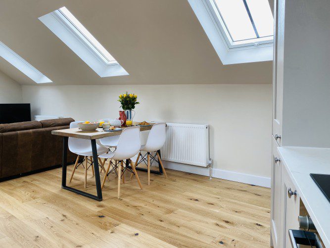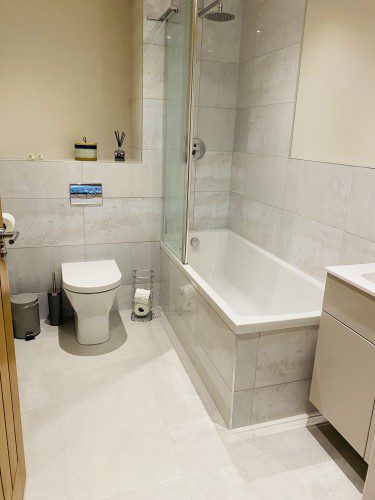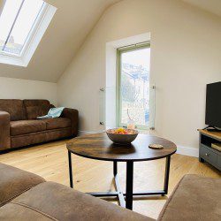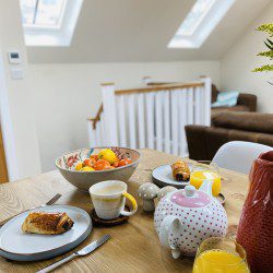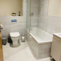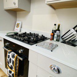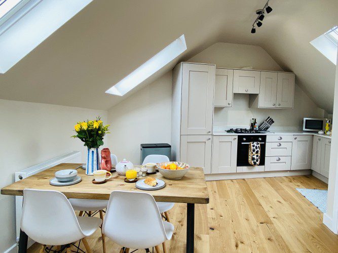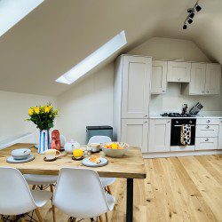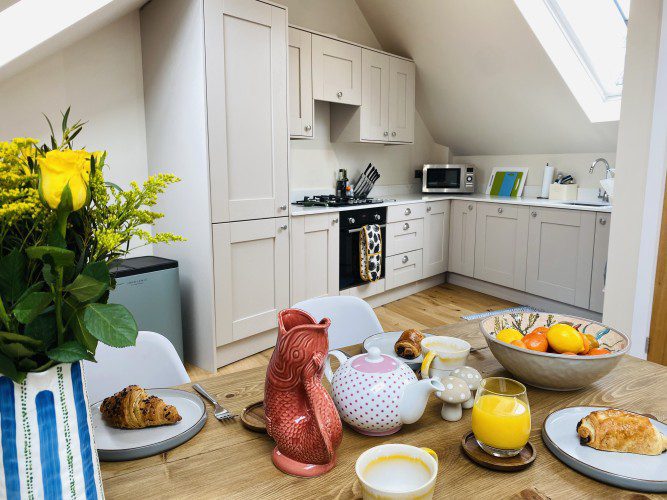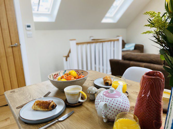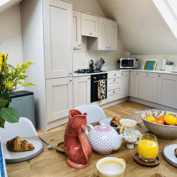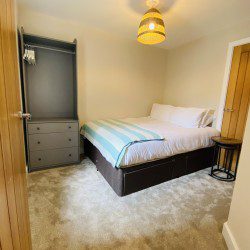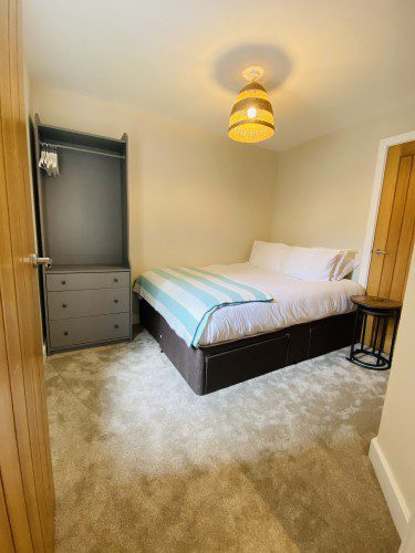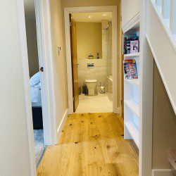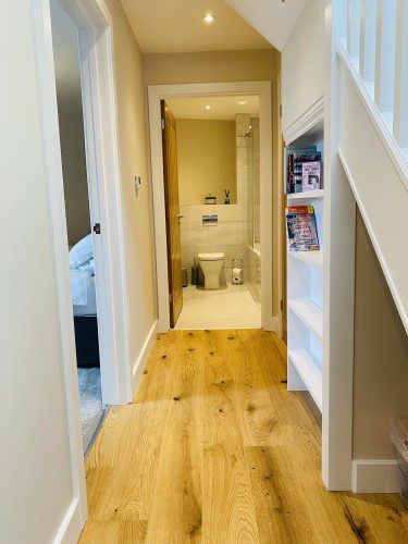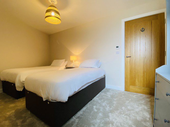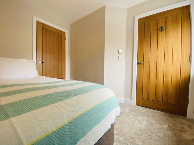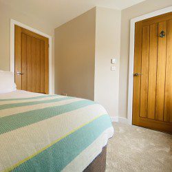 Vindelis Cottage is the first property you come to within the Chesil Mews complex too, so it’s easy to find. Your parking space is directly outside the cottage. Once inside you have two bedrooms on the ground floor. One has a king size bed and the other is a twin bedroom (two single beds). Also on the ground floor is the bathroom, this has a shower over bath.